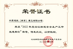 關于表彰2022年度安全生產工作先進單位和先進個人的決定 為表彰先進,進一步推動全街安全生產工作,經街道安委會研究決定,對中昇建機(南京)重工有限公司等5家安全生產工作先進單位。 |